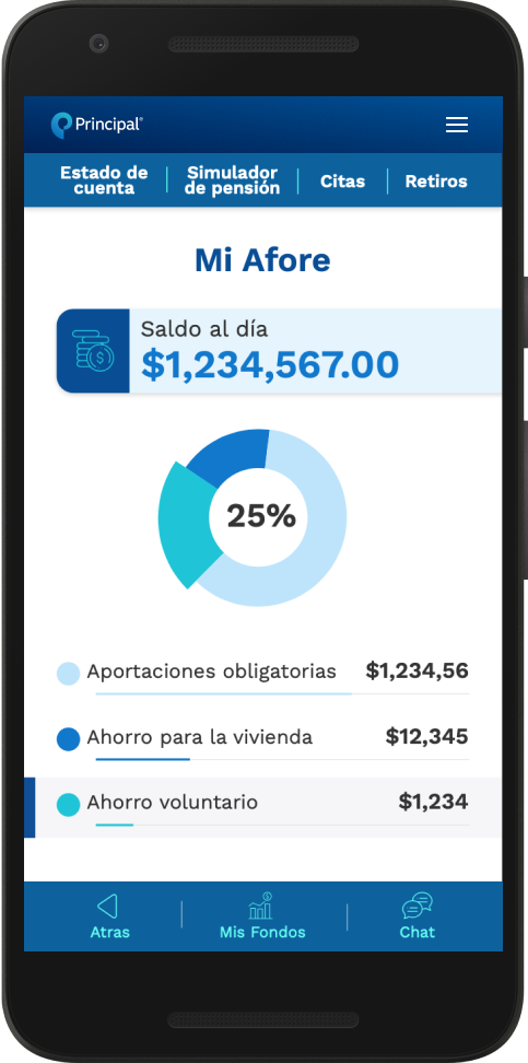 En Principal® queremos que en todo momento sientas tranquilidad y certeza sobre dónde está administrado tu ahorro para el retiro, es por eso que te ofrecemos: